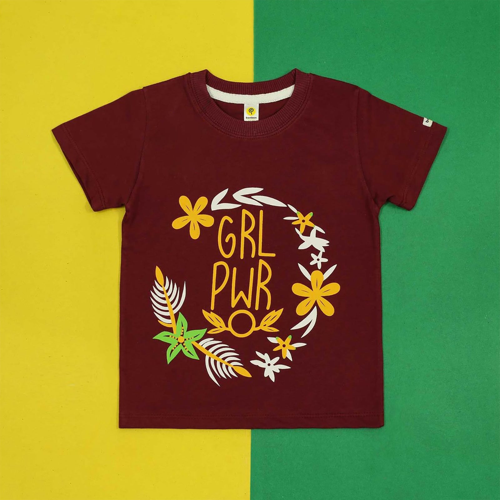 Girl Power Maroon Tee – Playful, Cute & Comfy